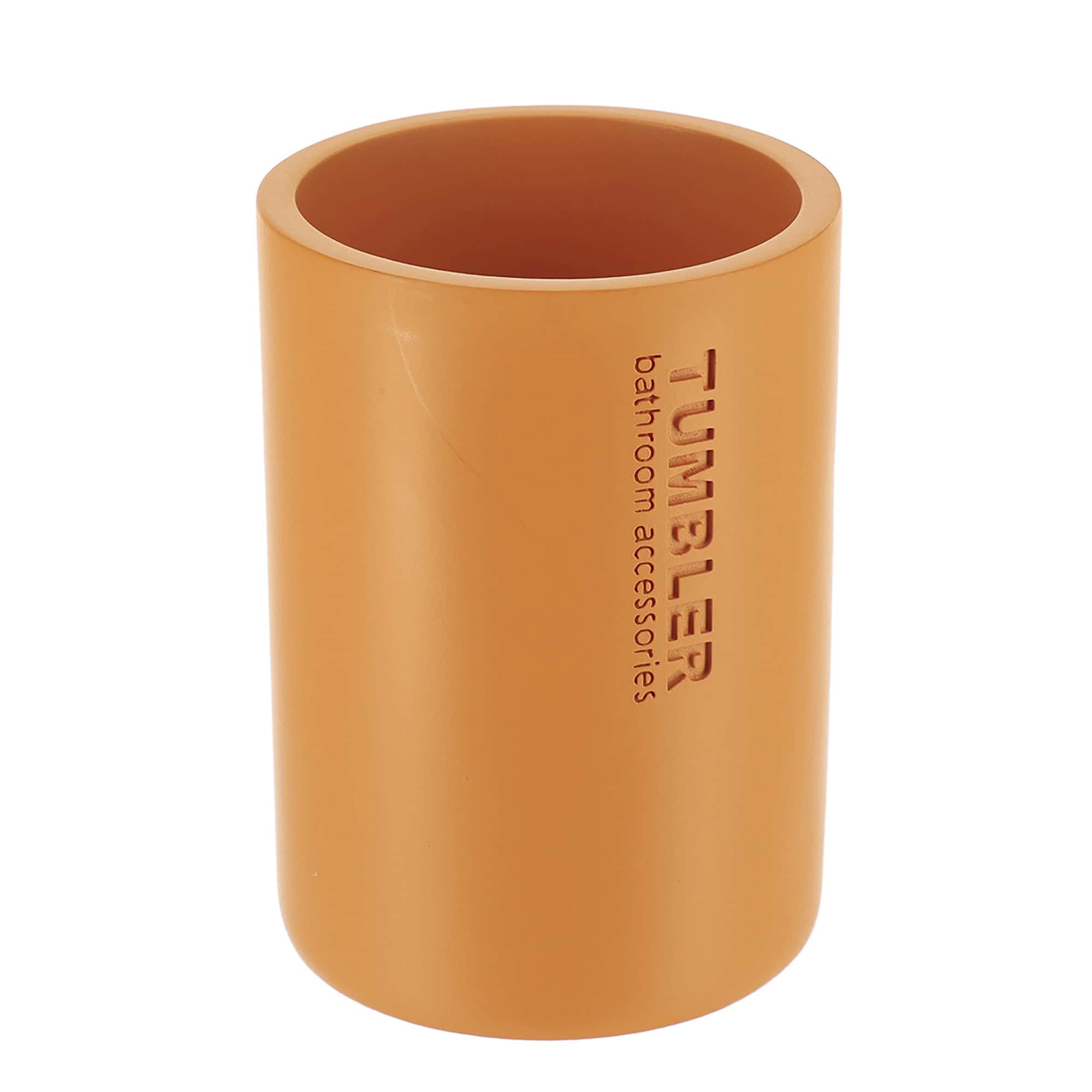 - CONTEMPORARY DESIGN: This minimalist mustard yellow tumbler cup completes the aesthetic of any bathroom. Complemented by embossed text reading TUMBLER bathroom accessories